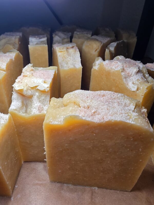 Ingredients: Tallow, coconut oil, olive oil, castor oil, water, lye, essential oil, brazilian yellow clay